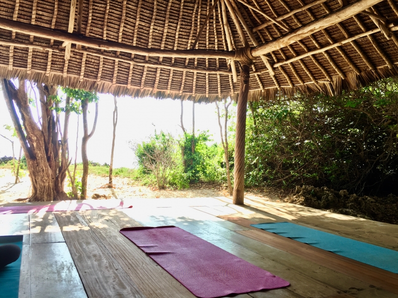 Hej, detta var vår yogastudio för tre dagar på vår fantastiska resa till Kenya. Vi var uppe vid sju och det var kul för att det var fullt på yogagolvet på morgonen och dansgolvet på kvällen med hela gänget som var här för bröllopet, både killar och tjejer. Flera av mina kompisar är riktiga yogisar och kul att se dem i ”full action”. Vi hade en fantastisk yogalärare, en ung kille från Kinondo, byn som vi bodde bredvid.